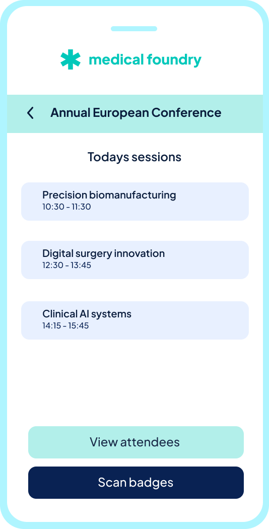 Branded iOS & Android apps for instant check-in, session scanning and attendance tracking.